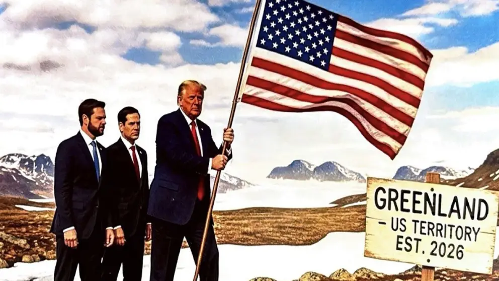 To double down on this, another AI-generated image was shared, showing Trump, alongside Jared Kushner and Marco Rubio, planting an American flag on a grassy hill with a sign that reads. “GREENLAND 51ST STATE EST. 2025.” It’s a powerful visual that makes his intentions crystal clear.